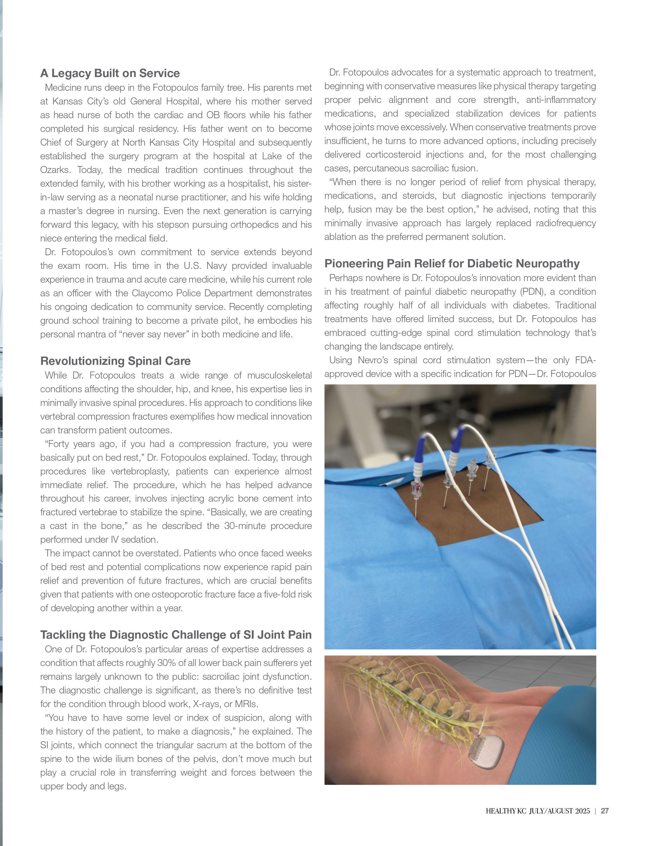 He became one of the first surgeons to perform robotic hip and knee replacements at several major hospitals in Kansas City.
