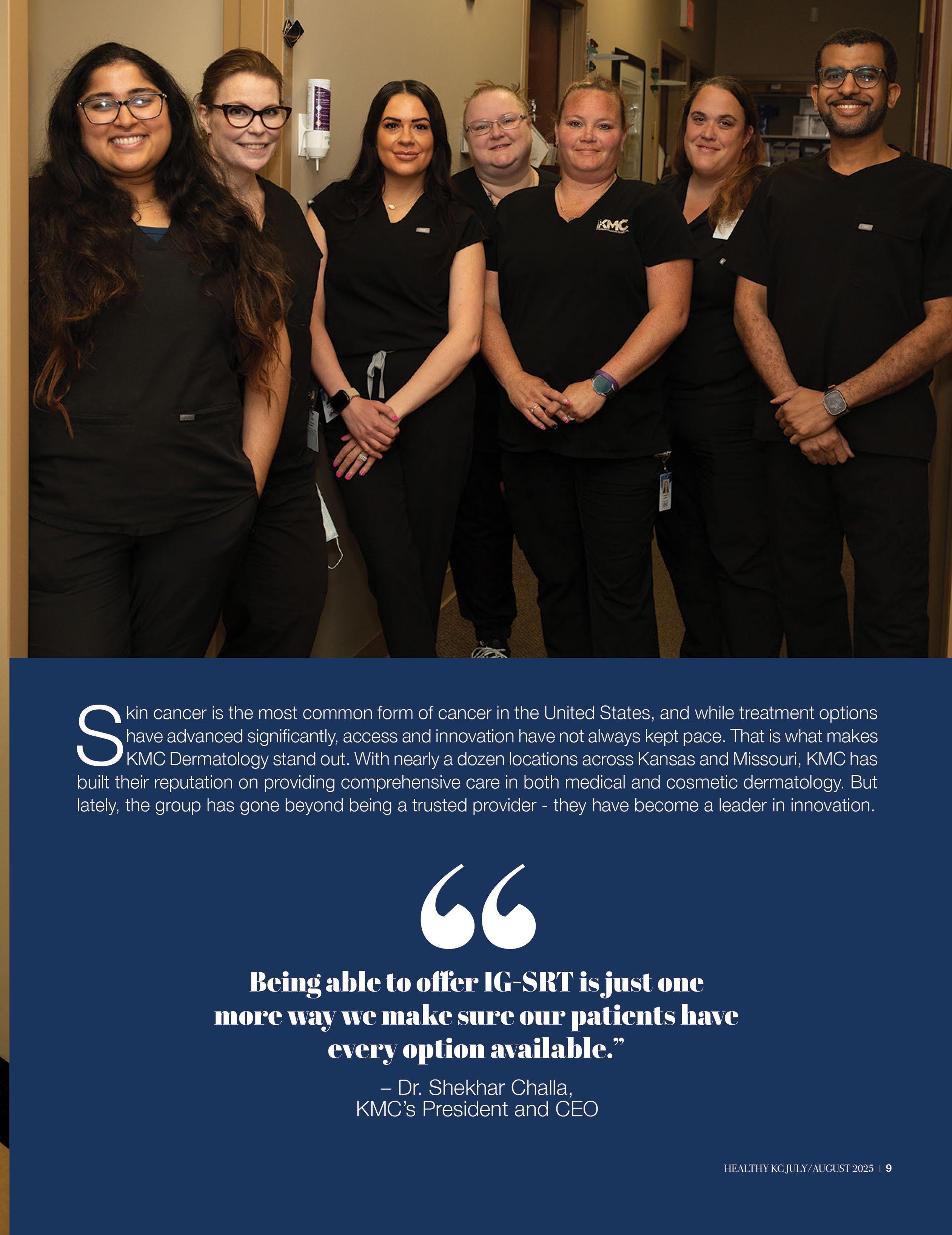 IG-SRT uses low-dose radiation that targets skin cancer cells with precision, guided by imaging technology that helps avoid healthy surrounding tissue. KMC Dermatology is currently the only dermatology provider in Kansas to offer this nonsurgical option for treating non-melanoma skin cancer.