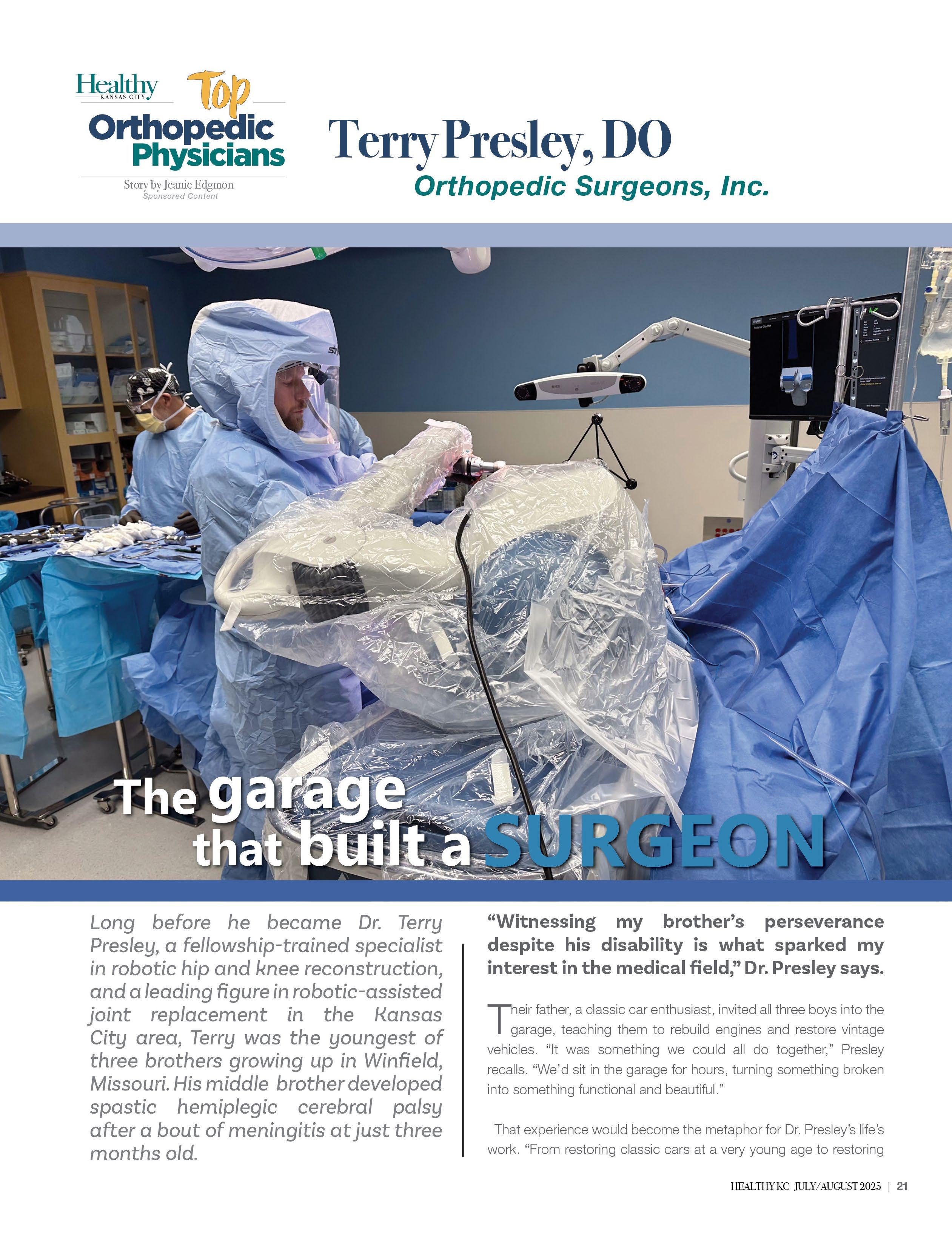 For more information about Terry Presley, DO or Orthopedic Surgeons, Inc. please call (816) 459-7500 or visit: doctorpresley.com or kcorthopedics.com