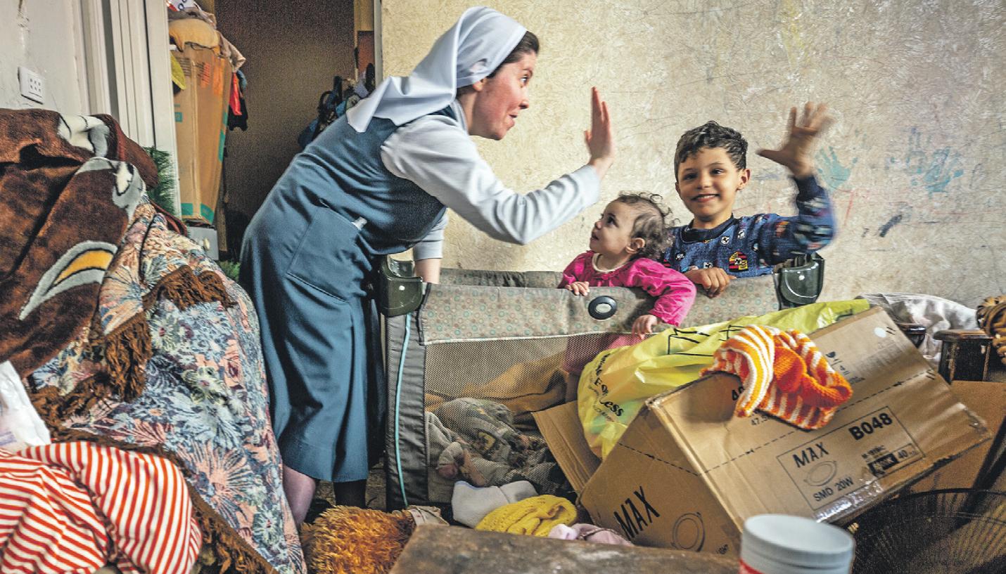 Schwester Roua kümmert sich um eine mittellose Familie mit zwei kleinen Kindern im armenischchristlichen Viertel Burj Hammoud in Beirut (Libanon).