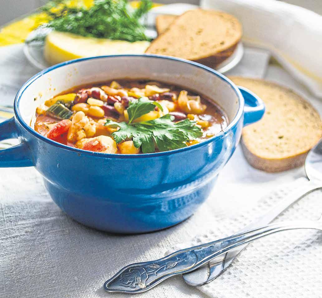 Im letzten Schritt werden die Nüsse grob gehackt und in einer Pfanne, am besten ohne Fett, angeröstet. Petersilie anschließend waschen, trocknen und fein hacken. Nüsse und Petersilie mischen und auf der Suppe verteilen. Besonders gut passt dazu ein warmes Bauernbrot.