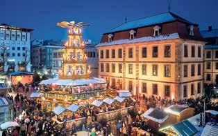 Den Advent mit allen Sinnen erleben und genießen: Alles ist zauberha beleuchtet, es riecht nach köstlichen Maronen und stimmungsvolle Musik scha eine vorfreudige Atmosphäre. Das und noch viel mehr erwartet die Gäste des Fuldaer Weihnachtsmarktes. Vom 24. November bis 23. Dezember (am 26.11. ist geschlossen) verwandelt sich das barocke Fulda in eine traumha e Weihnachtsstadt. In der Innenstadt reiht sich dann ein „Knusperhäuschen“ ans nächste – allesamt mit lauter „guden“ Sachen, wie man in Fulda sagt. Im Herzen des Weihnachtsmarktes steht eine über 18 Meter hohe, spektakuläre Pyramide mit lebensgroßen Nussknackern, um die sich zauberha dekorierte Hü en reihen und mit Krippenfiguren und anderen weihnachtlichen Accessoires begeistern. An den Adventswochenenden dürfen sich Familien mit Kindern im Kinder-Weihnachtsland über ein abwechslungsreiches Programm freuen. A raktionen sind hier das Kinder-Riesenrad und der Weihnachtsexpress. Und das mi elalterliche Weihnachtsdorf mit seinen besonderen Dü en und leckeren Speisen ist ein wahrer Streifzug durchs Mi elalter. Auch im Winterwald lässt sich die Vorfreude auf Weihnachten so richtig genießen: Große, duftende Tannenbäume und kleine Holzbuden mit einem reichhaltigen kulinarischen Angebot laden zum Verweilen ein. Eines der Highlights hier ist der weihnachtliche regio’markt, wo Anbieter aus Fulda und Hessen ihre nachhaltig erzeugten Produkte präsentieren. Neben den klassischen Köstlichkeiten und Weihnachtsangeboten an den Ständen auf dem Universitätsplatz erwartet die