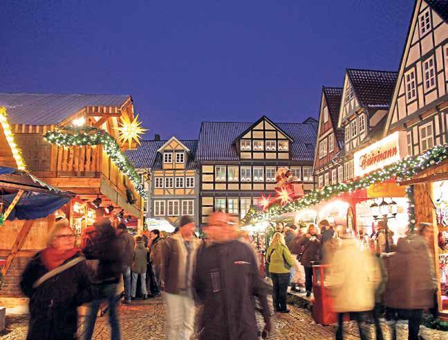 Als wäre das nicht schon genug, bringen festliche Aktionen und Konzerte noch mehr stimmungsvolle Advents-Highlights in die Stadt am südlichen Rand der Lüneburger Heide. Sehnsüchtig erwartet von Groß und Klein fi ndet auch dieses Jahr wieder die große Lichterparade in der Celler Altstadt sta . Magisch weihnachtliche Lichtgestalten werden am ersten Adventswochenende die gesamte Innenstadt verzaubern. Auf der Stechbahn lässt sich, mit einem Glühwein oder Punsch in der Hand, gemeinsam mit Familie und Freunden herrlich Posaunenchören und Konzerten lauschen. So kommt garantiert weihnachtliche Stimmung auf. Der ehemalige Turnierplatz der Stadt mit einer Apotheke aus dem 15. Jahrhundert ist auch zur Weihnachtszeit ein beliebter Treff punkt für Jung und Alt.
