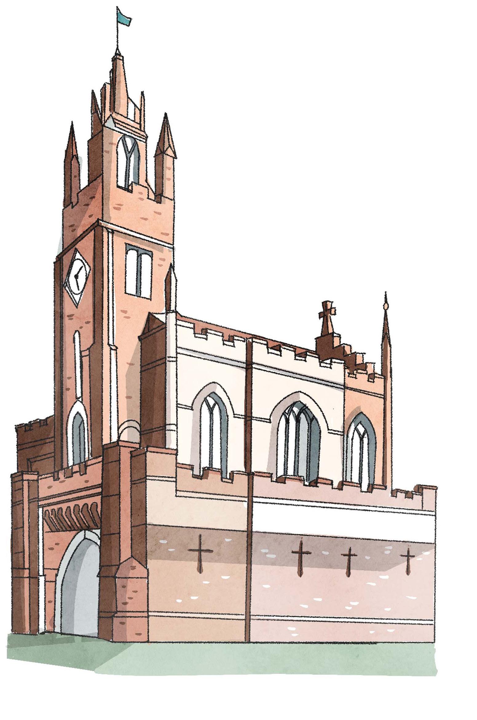 This splendid structure with its 174-foot tower was rebuilt in the 18th century after the terrible fire of 1694 that destroyed two-thirds of the old inner city. Heroic firefighting teams managed to save half of the church, including the Beauchamp Chapel dedicated to the earls of Warwick. Now head south down Church Street past the Athenaeum. This former home of a town mayor was opened in 1846, following the model of the London Athenaeum, a club founded in 1824 where gentlemen could read books and newspapers and enjoy intelligent conversation.