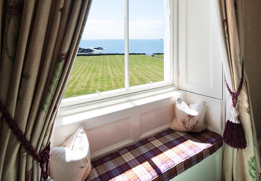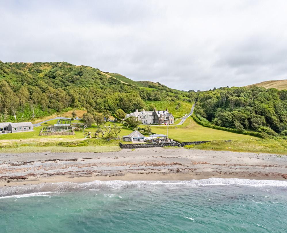 For utter seclusion by the Irish sea, 19thcentury Knockinaam Lodge has a shingle beach out front and is backed by a hilly ridge. The cove is private, so guests in the former hunting lodge’s 10 bedrooms will have it all to themselves, along with 30 acres of landscaped grounds. The comfortable, classic interiors feature wood panelling, period-style beds and muted tartans. The Bay room is a highlight, featuring a Victorian Tester bed, a window seat and sea views. A luxurious, self-catered cottage sits on the grounds too. Local producers supply the majority of what is cooked up in the sustainably minded restaurant, where the tasting menu might include Drummore lobster or scallops from Skye. In summer, there is the option to enjoy a BBQ dinner out on the lodge’s alfresco patio, close to the waves.