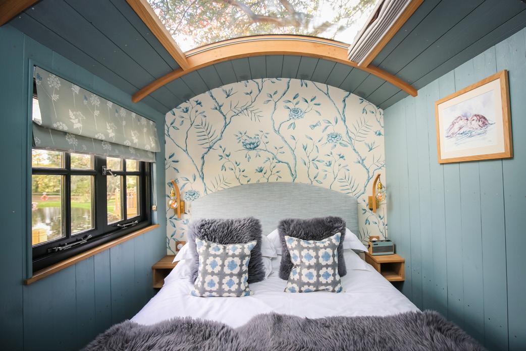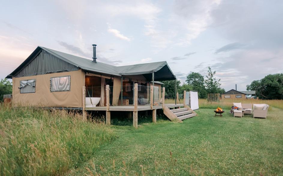 Inspired by safari lodges in Kenya but slap bang in the middle of the English countryside, the Nest’s three ‘tents’ are dog and family friendly. With three bedrooms sleeping six, they have a large living area and an inviting egg-shaped tub with great views of the lake. You can order a hamper or BBQ pack. ◆