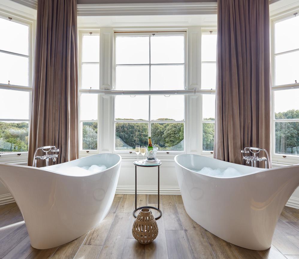 This Georgian manor house lies on Durham’s heritage coast, a place for bracing walks along the cliffs. Beaches –some shiny with smooth, glass pebbles that hint at the coast’s industrial past – are a short stroll away, beyond 37 acres of parkland. The five-star hotel has just 21 suites and offers a raft of services, so guests feel truly pampered. Bungalow Suites have their own hot tubs with sea views, while the Garden Suite has a wood-fired hot tub. The Ada Lovelace Suite, meanwhile, features twin slipper baths, perfect for couples who want to enjoy a soak while gazing across the grounds. The spa is huge, with an indoor pool, a hammam, a sauna, and a heated therapy pool outside in a zen garden.