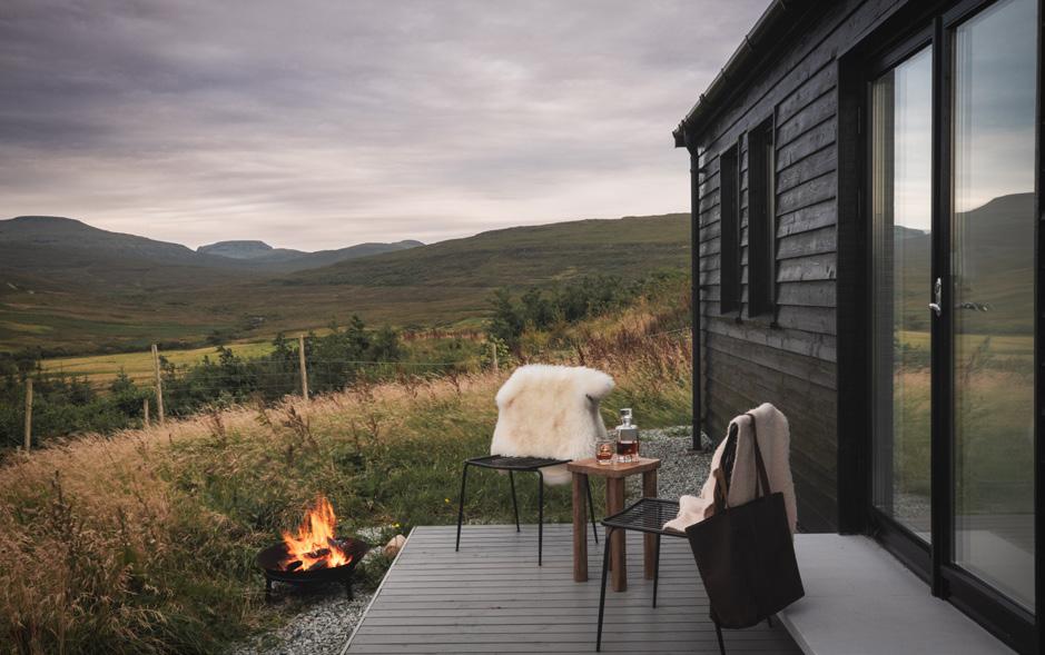 Enjoy the remarkable views from the outdoor bathtub for two or from the bed at this cabin in Skye’s scenic Valley of Glendale. Black on the outside, the sleek property is black, white and grey on the inside. Foodies can book a nine-course private dining experience or go foraging to make their own lunch. ◆