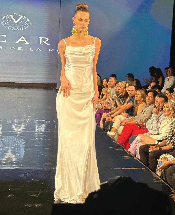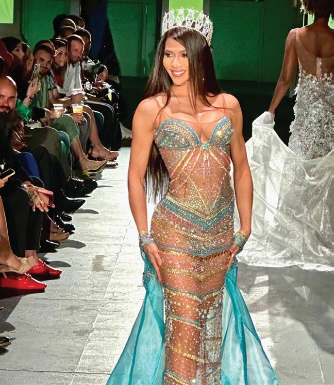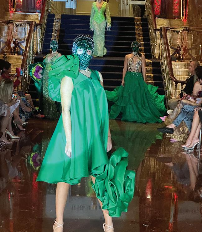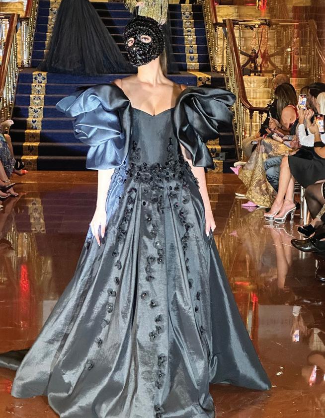 material that traced the curves of the models on the runway. The gowns boasted an array of diverse cuts, intricate textiles, and captivating details, including flowy capes, leg slits, cut-outs, and sheer textiles. Completing the looks were elegant head accessories, elevating the collection to an artistic crescendo.