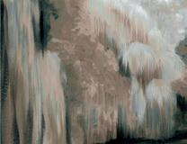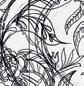 Bosquejo se dibuja poco a poco, como si el gra to aún reciente se acabase de arrastrar por el papel para crear una selva de plantas con grandes hojas que parecen salir del lienzo y ocupar todo el espacio.
