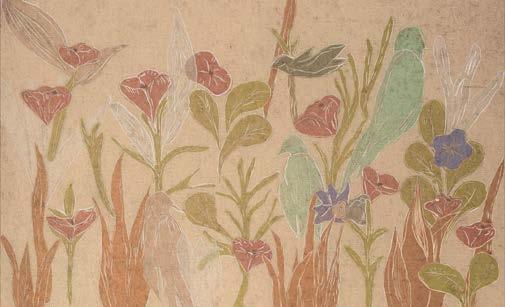 Line by line, point to point. Colored pencil drawings. Hairline by hairline, a special, irregular and organic landscape has been built with reminiscences of Japanese culture. We immerse ourselves in a countryside landscape featuring rolling hills, geisha, magnolia blossoms, birds, and lakes.