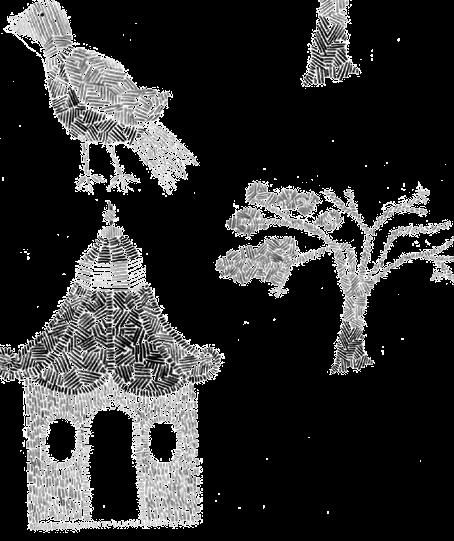 Raya a raya, punto a punto. Dibujos a lápiz de color. Rayita a rayita, se ha ido construyendo un paisaje especial, irregular y orgánico con reminiscencias de la cultura nipona. Nos sumergimos en un paisaje de campo protagonizado por suaves colinas, geishas, flores de magnolia, pájaros y lagos.