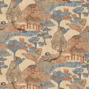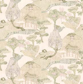 Drinking from drawing and traditional prints, the Pagoda design was born, a rural landscape. Paths, lanterns, trees, pagodas and bridges that cross rivers intersect each other. Everything happens in the same space, a country scene where everything happens calmly, where time stops and only the singing of birds is heard.