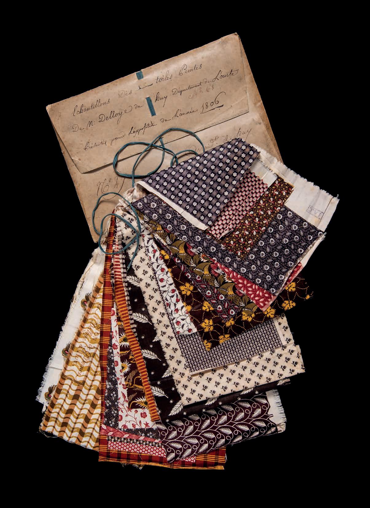 This collection of thirty-three pristine printed-cotton samples, preserved in their original portfolio dated 1806, offers a rare glimpse into the multifaceted business activities of a Liègeois entrepreneur in the early nineteenth century. Manufactured by Nicolas-Aimé-Antoine Delloye (1755–1818) in Huy (in modern-day Belgium) and shown at the fourth Exposition des Produits de l’Industrie Française in Paris that year, the samples represent what seems to have been a new and experimental venture for him. Interestingly, the enterprise for which he is primarily—and frequently—cited in the annals of industrial manufacturing during this period is tin ware. One of the many reports published at the time of the exhibition, Notices sur les objets envoyés à l’exposition des produits de l’industrie française, listed Delloye’s contributions as paper, cotton samples, and sheets of tinplate, stating that the latter “came from a factory whose operations began this year.” It may be that the financial success of the Delloye family’s long-established papermaking firm allowed Nicolas to invest in other areas of manufacture, despite the high risk of failure or bankruptcy. A prominent citizen of Huy, Delloye was twice mayor (1799–1800, 1809–15) and served as a member of its municipal council (1803–15) during the two decades when the city was under French control (1795–1815).