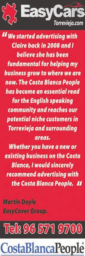 The Alfaz spiritual friends centre o er a warm welcome at “The Comm” (Ex The Forum/Mare Nostrum) Camino del Pincho 2, l’Alfaz del Pi, 03580, Alicante. Visiting medium every week - services starts 6.30 pm every Thursday. ‘Free Healing is available after the service. contact Dot 634 320 013 email: dorothydorothy608@gmail.com