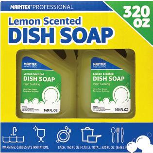 Maintex Professional Dish Soap High Sudsing Lemon Scent 160 fl oz, 2 ct Item 1760075
