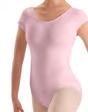 and red spandex brief-cut leotard with front lining and cut-out back with clasp closure. Attached royal stretch velvet skirt. Sequin button and bow trim. Imported.