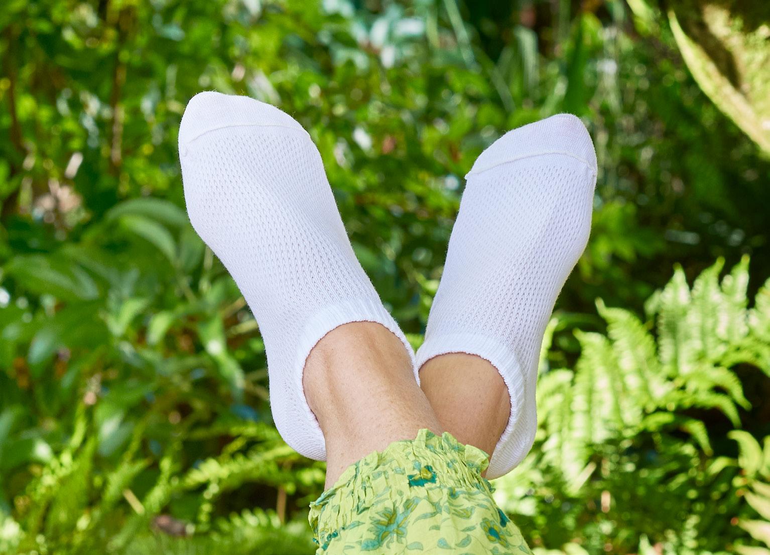 The super-soft cotton yarn keeps feet cool, dry, and comfortable