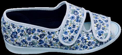 This soft, cotton-mix slipper will help keep feet cool. Featuring a flexible, rubber sole, this style also works well as a sandal or house shoe. The straps adjust to fit very swollen or bandaged feet, while the cushioned, towelling footbed offers great comfort underfoot.