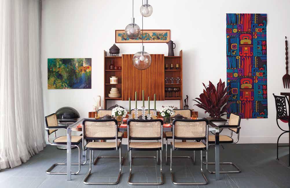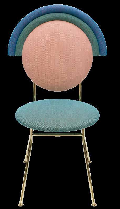Linda Horn’s deco-inspired woven leather side chair in a chestnut color with striking geometric shaped back, and a cream colored cushion, sits atop gathered bamboo legs. Priced at $1,075. 212.772.1122 / lindahorn.com @lindahorninc