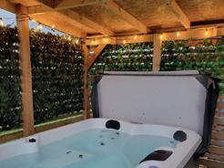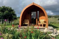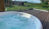 Also with their own hot tubs are two glamping units hand-built by Jon, a cosy shepherd’s hut and the larger Bomford Hut, both with showers and toilets and kitchenettes.