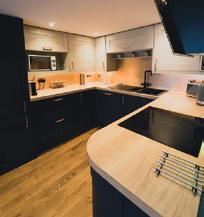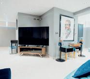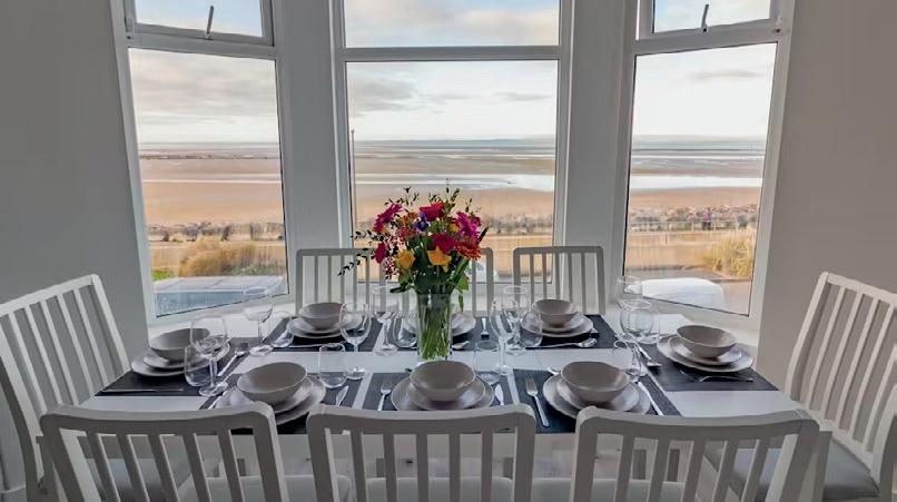The front entrance faces the beach, while private gated parking is available at the rear. The back decking enjoys evening sun — perfect for unwinding after a beach day. Inside, the openplan living area features a 65” TV, Sonos Atmos sound system, and fast Wi-Fi 6e for streaming or remote work. A utility room, cloakroom, and wellequipped kitchen (with air fryer, coffee machine, Nutribullet and more) ensure home comforts.