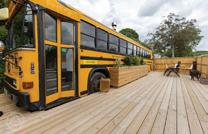 A shepherd’s hut and a converted school bus add to the possibilities for
