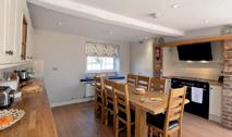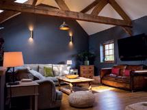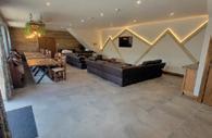 The house has 5 spacious en suite bedrooms with additional sofa beds throughout the house, accommodating 21 guests in total. The interiors combine homely comfort with high-end features: a well-equipped rustic kitchen complete with Aga, a generous dining room for shared meals, a cosy living room, and plenty of breakout spaces like the sunroom, study, and a games room with both pool and ping-pong tables.