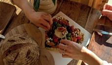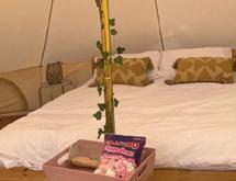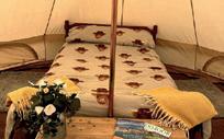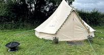 The seasonal glamping facilities run by Jon, Pip and John’s parents include three furnished bell tents with proper beds and outdoor cooking facilities for two or four people, one of them with the romantic extra of a wood-fired hot tub.