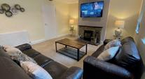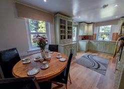 Sleeping up to 10 adults, the house includes four bathrooms (two en suite), with two ground-floor bedrooms, perfect for guests with limited mobility. A toddler bed and two cots are also available. The home is pet-friendly (up to three dogs) and located at the end of a private drive with ample parking for four or more vehicles.