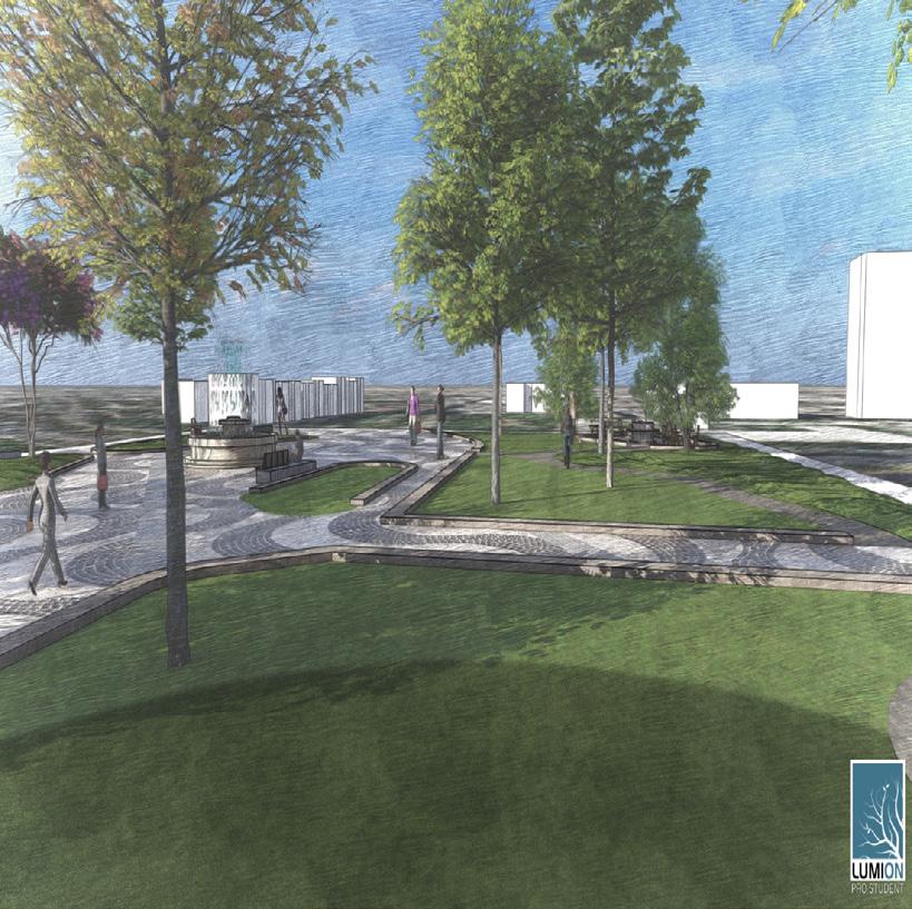 For this project1, the plaza is to be designed to accommodate the flow of both commuters as well as park & plaza visitors. It is imperative to the client that a strong connection be made into the site from the existing road and sidewalk crosswalk network.