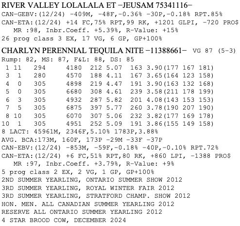 Charlyn Perennial Impress Netty EX-94 5E 3x All-Canadian Nominee Sister to Dam of Lot J1