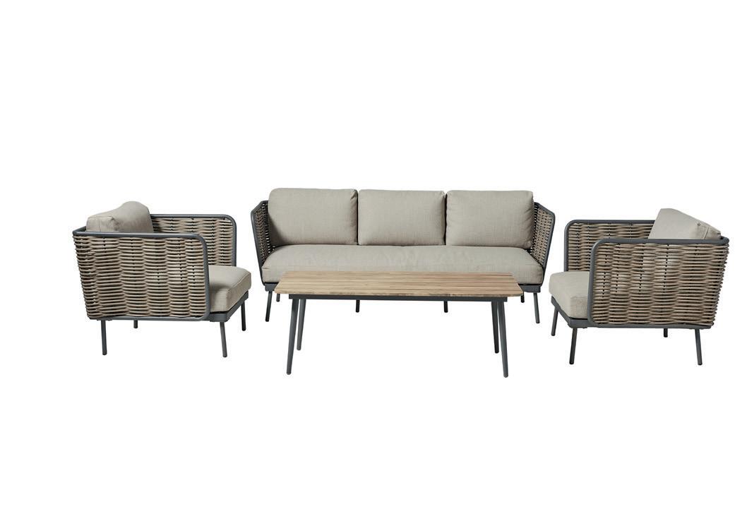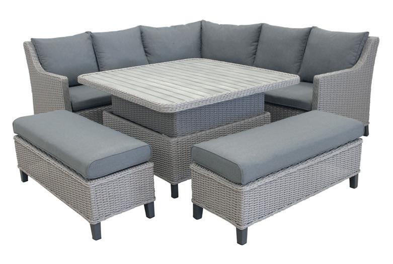 A corner set is a sociable all-in-one arrangement that visually creates an outdoor room in any space – one as stylish and as comfortable as any inside.