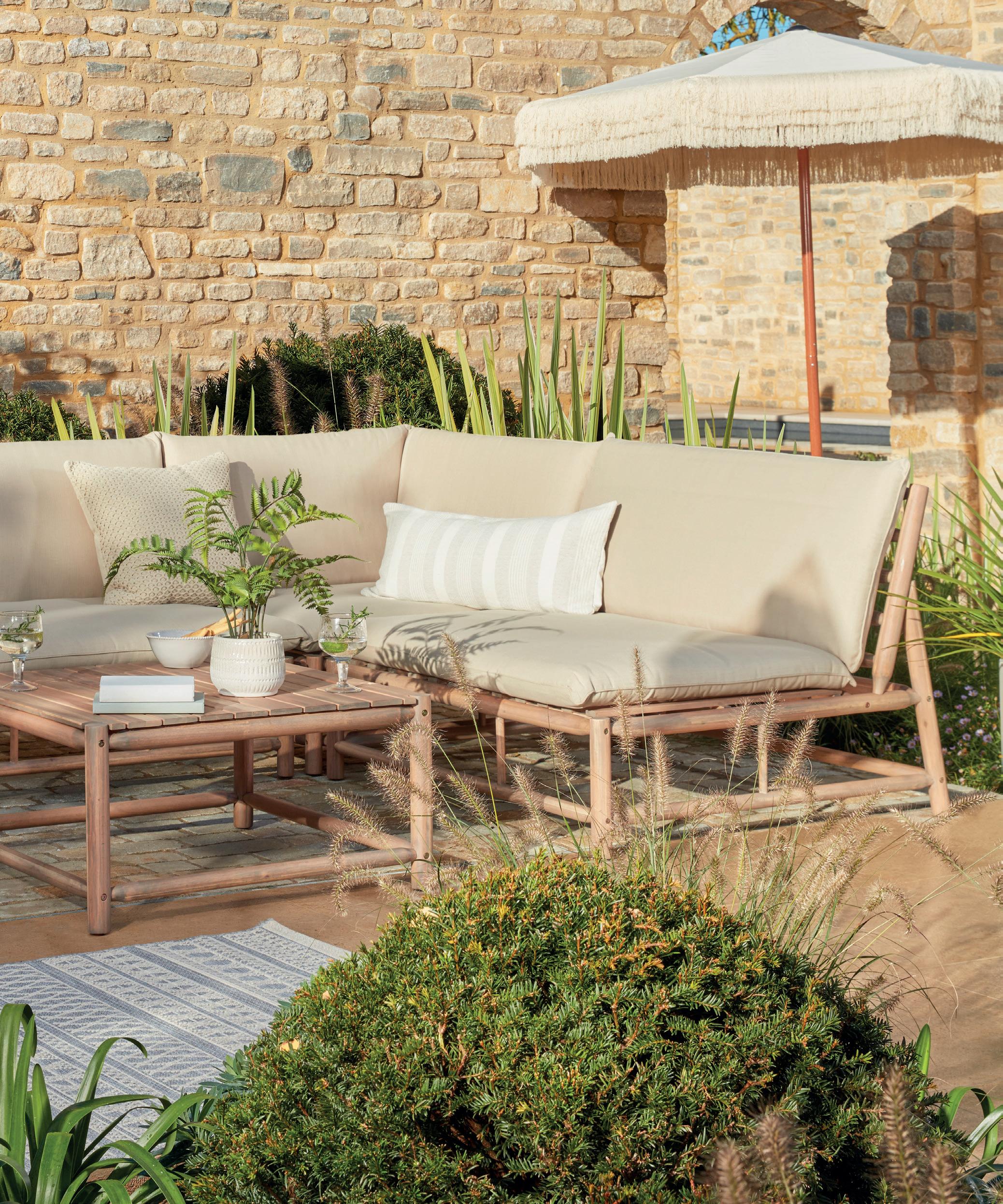 29 From the first alfresco coffee to that early evening catch-up with friends enjoy a go-to spot to switch off with indoor atmosphere and style. NEW Modica Corner Set £2,250 1534159 Fabulous Extendable Globe Festoon Lights £60 1327659 NEW Cable Knitted Cushion £55 1834533 NEW Stripe Organic Cotton Bolster Cushion – Natural £75 1834530 NEW Circle Embossed Stoneware Vase £65 1134432 Stylish Lounging