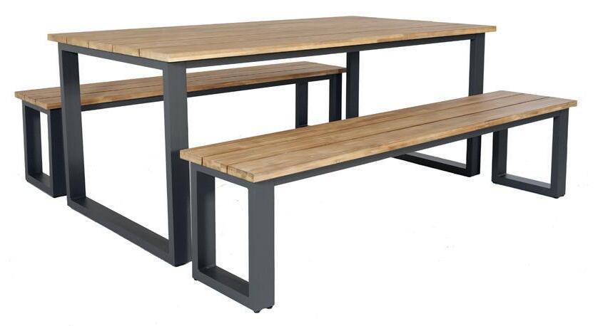 The impact of industrial inspired style provides a complete social scene outside, a balanced look that contrasts beautifully within the garden.
