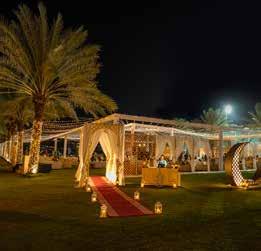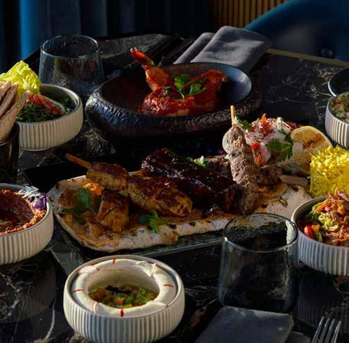 the venue. The culinary team will captivate palates with traditional soups, hot and cold mezze, salads, and live saj and shawarma stations to kick-start the evening. Look forward to Arabic mixed grills, seafood specialties, and an extensive selection of dishes from Asia. Indulging the sweet tooth, a tempting assortment of desserts feature traditional treats such as Umm Ali, Roses of Sand, trifle, tarts, and pastries, while live oud and tabla players create an enchanting experience for all.