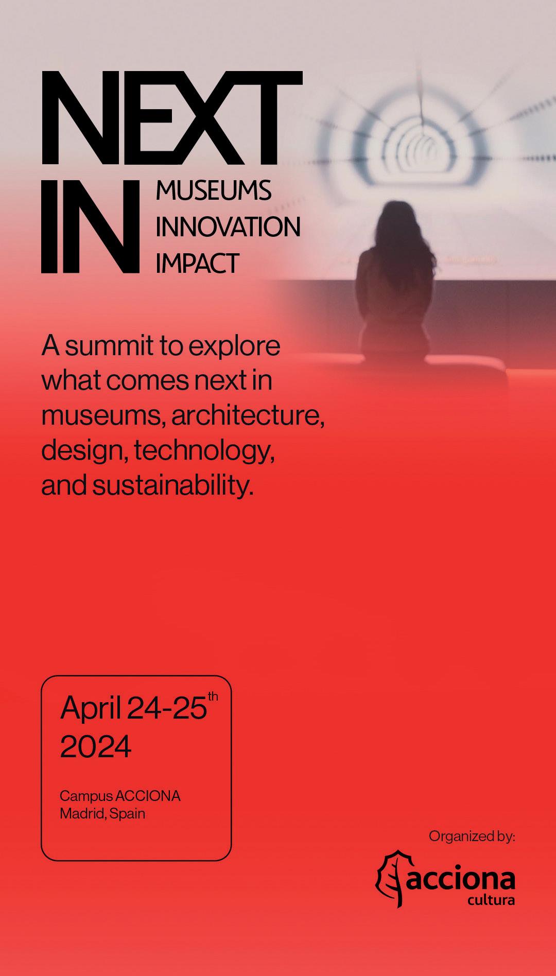 and sustainability, ACCIONA’s new campus rises as a testament to the company’s commitment to excellence and environmental consciousness. The campus’s dynamic spaces, brimming with natural light and verdant greenery, provide a stimulating environment for two days of collaborative thinking at NEXT IN. Overall, NEXT IN will be with no doubt a call to action for the museum community to embrace innovation, preserve cultural heritage, and work together to shape the future of culture.