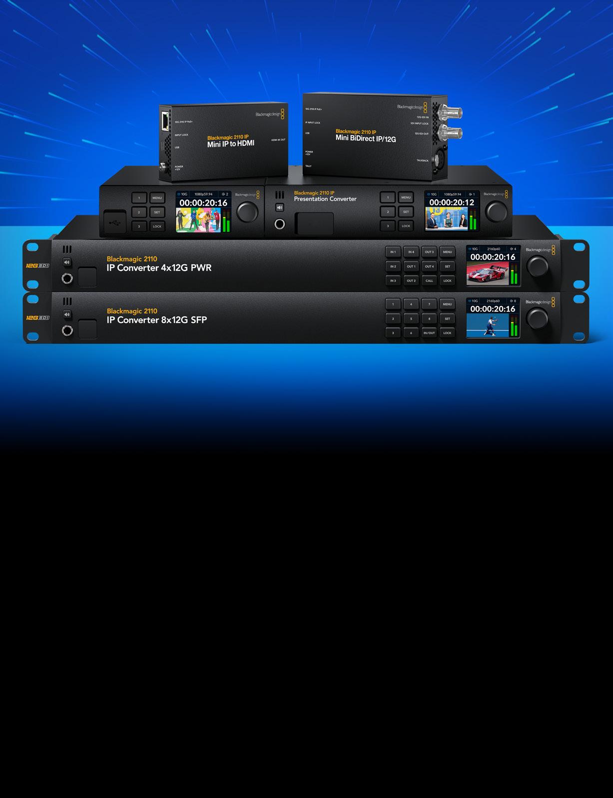 Now you can build affordable live production and broadcast systems with SMPTE-2110 video! Blackmagic Design has a wide range of 2110 IP products, including converters, video monitors, audio monitors and even cameras! You get the perfect solution for intergating SDI and IP based systems. Plus all models conform to the SMPTE ST-2110 standard, including PTP clocks and even NMOS support for routing.