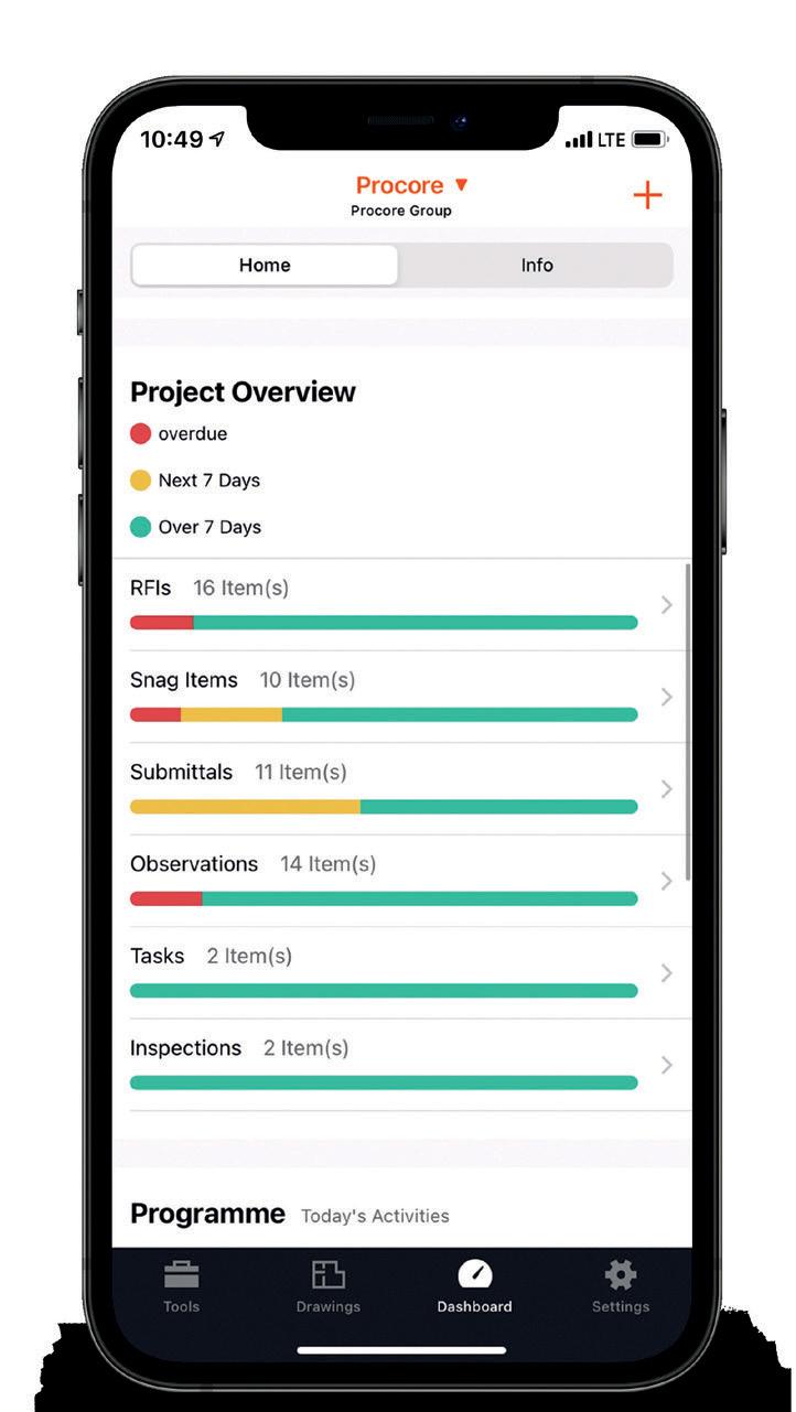 Bring information, teams and workflows together on one easy-to-use platform. Whether you’re an owner, contractor or subcontractor, you can achieve real-time visibility into project status, drive collaboration, and move your business forward with Procore. Connect teams on one intelligent, easyto-use