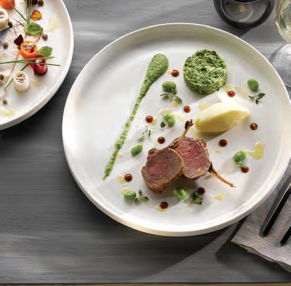 A graphic, faceted relief design that reflects the light differently at every angle delivering food presentation of exceptional quality.