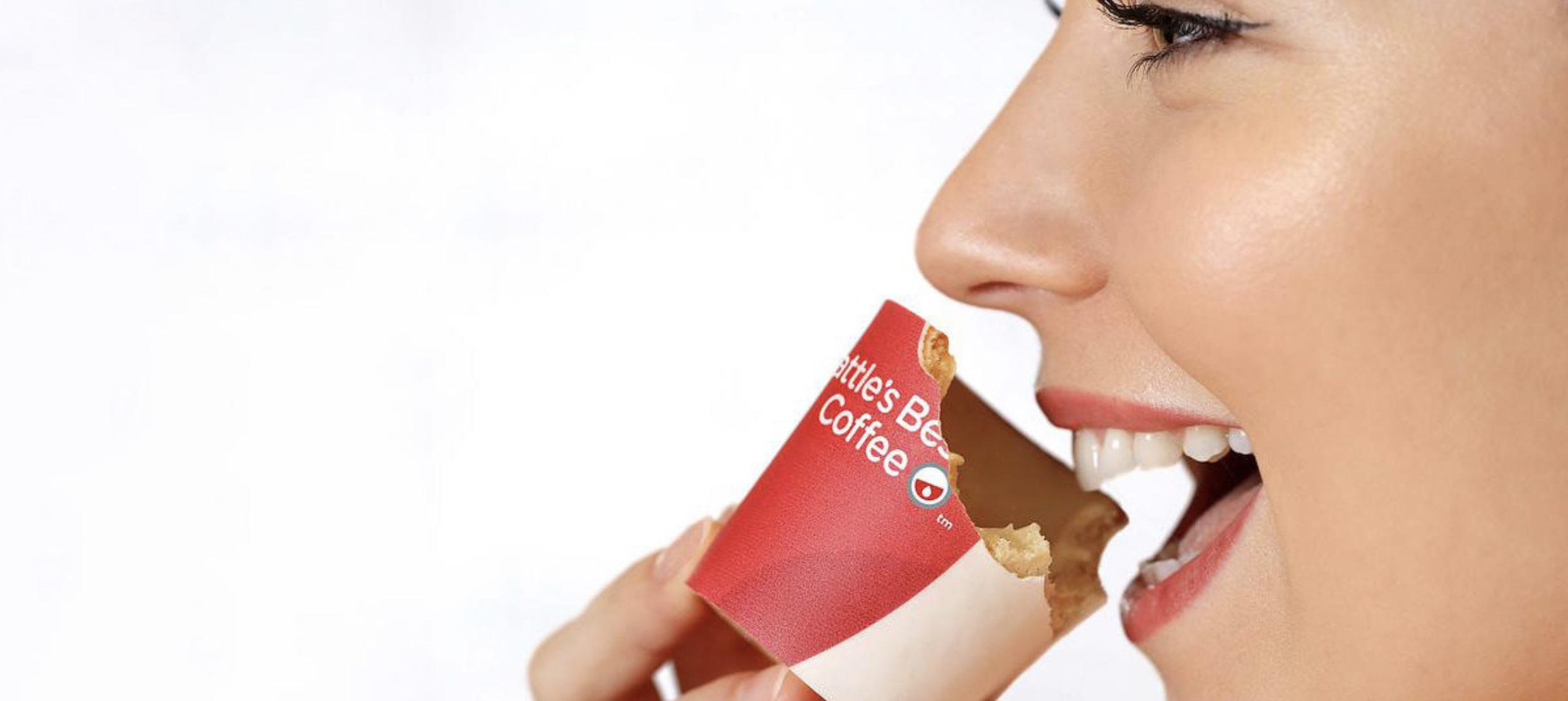 While the designer-duo focuses on cups for cold beverages, the fast-food chain KFC had introduced edible coffee cups in collaboration with Seattle’s Best Coffee earlier this year. The cups were made of a cookie shell and lined with a layer of white chocolate. The outside of the cup is wrapped in sugar paper. The cups were developed by scientists at the experimental UK food development company, the Robin Collective.