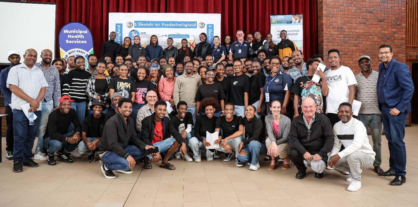 Group photo of Spaza shop owner, CPUT students and lecturers, and West Coast District Municipality (WCDM) representatives who attended the Velddrif workshop.