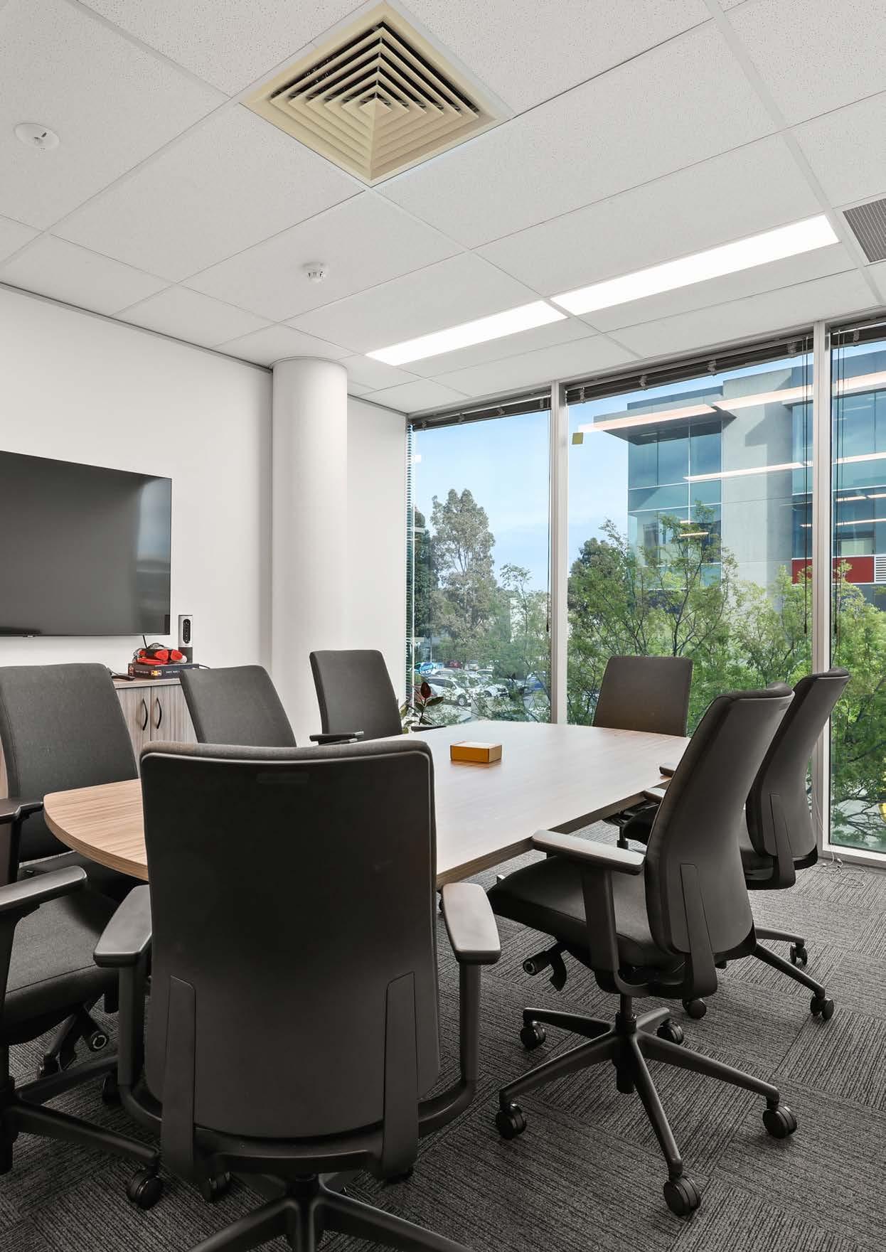 Suite 16 is located on Level 1 and offers terrific natural light throughout with floor to ceiling height windows. The fit-out is a combination of partitioned offices, meeting rooms and open plan layout with workstations. There is an eight-person boardroom and kitchen amenities.