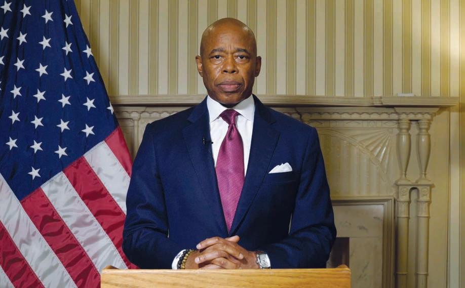 Adams, who swept into o ce in 2021 as a pro-police moderate with powerful ties to labor unions and the business community, now nds his mayoralty in peril amid growing calls to resign. e charges include bribery, wire fraud and soliciting contributions from foreign nationals. But the mayor has vowed to remain in o ce and defend himself against the charges, and suggested the indictment was payback from the federal government after his public disagreements with President Joe Biden’s administration.