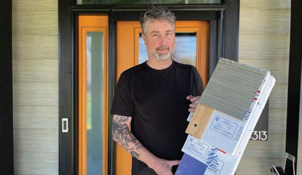 tem, which the Hylands produce at a Cleveland warehouse, is a big switch from typical homes, as most are stick-built onsite. e power system is commercially available with a heat pump and highly e cient hot water tank and uses a high-e ciency washer and dryer.