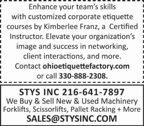 JUNE 17, 2024 | CRAIN’S CLEVELAND BUSINESS | 29 CLASSIFIEDS Advertising Section To place your listing in Crain’s Cleveland Classi eds, contact Suzanne Janik at 313-446-0455 or email sjanik@crain.com CLASSIFIED SERVICES ENVIRONMENTAL CONSULTING BUSINESS OPPORTUNITY