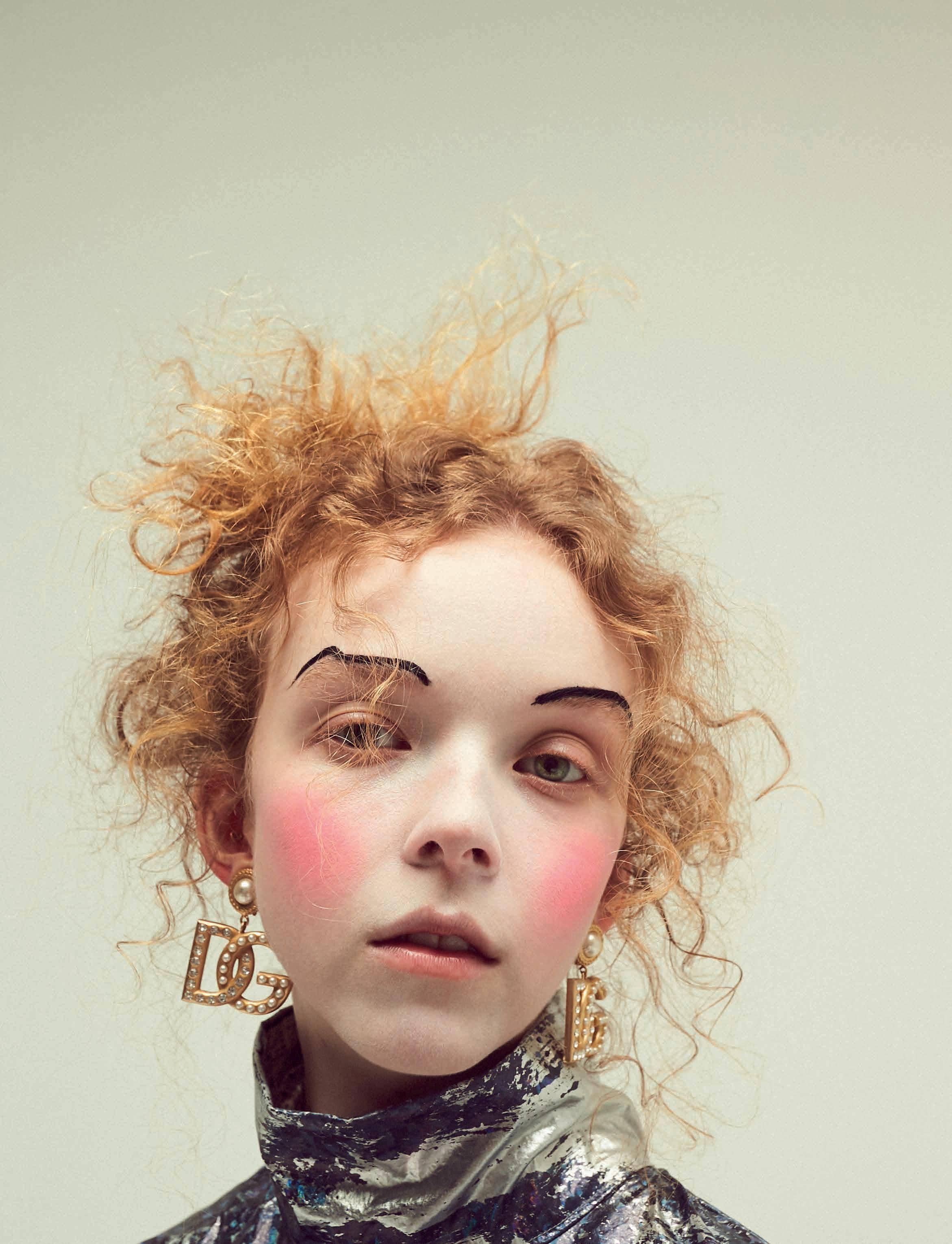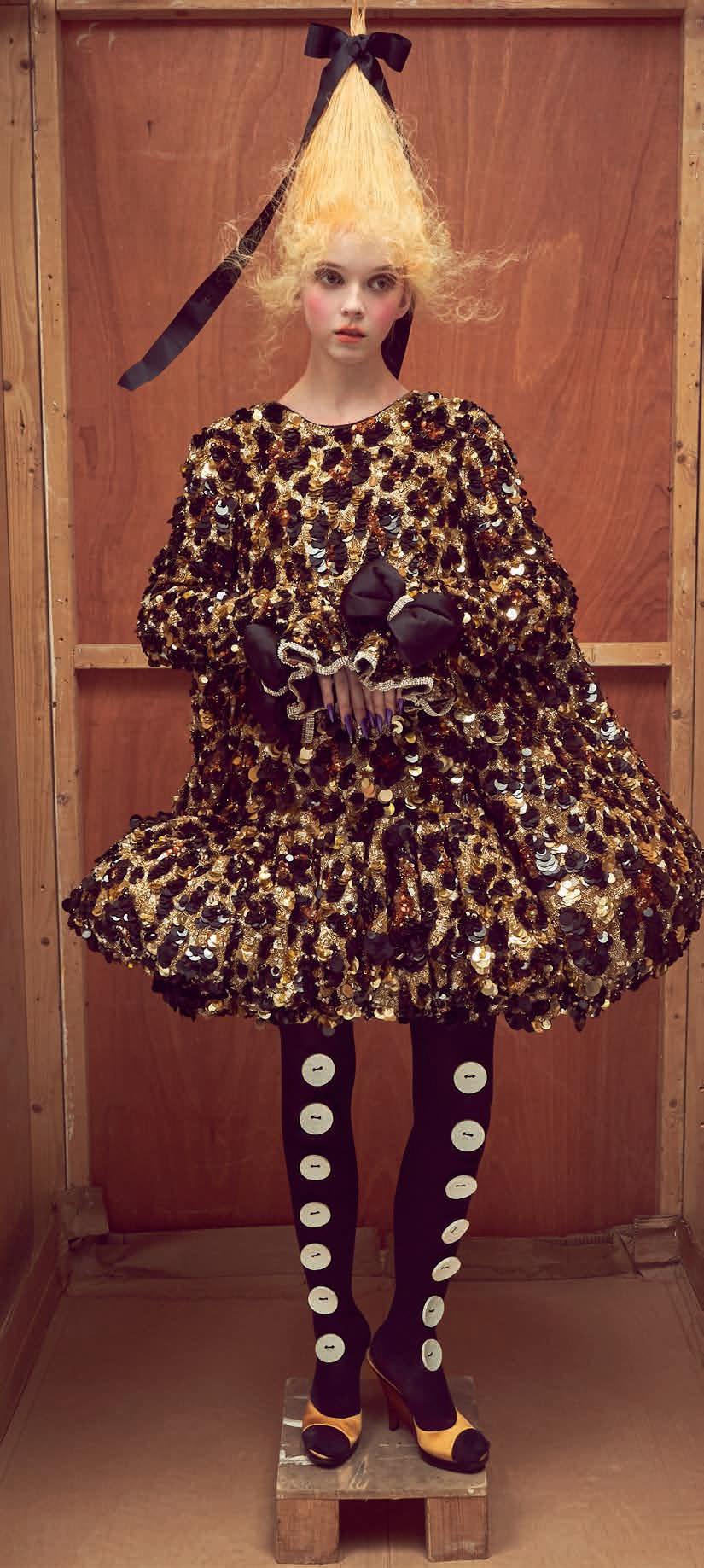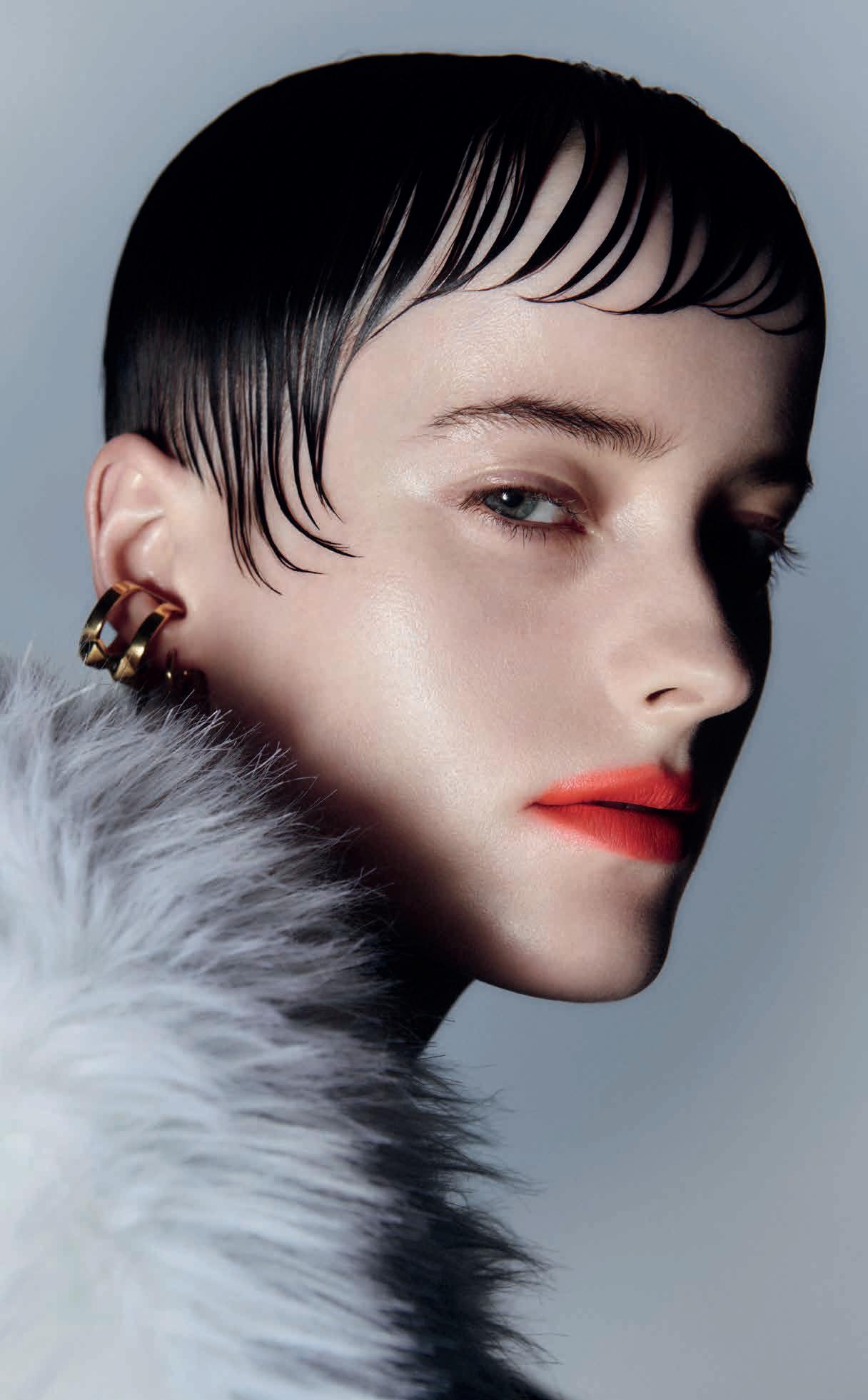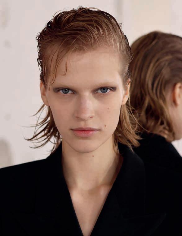 Another favourite collaborator is Erin O’Connor, introduced to him through make-up artist Adam de Cruz. The rst job was prepping her for three FROW appearances at Fashion Week, three different looks needed in one day. He gets a little emotional: “It felt immediately like family. She’s open to anything, the perfect subject, but she also comes with an incredible fashion heritage. You meet this person who has worked with all the greats, and it puts a lot of pressure on you!” he laughs. “She’s had every hair colour, cut and wig on her head! You’re working with someone who can carry off any look – that’s the exciting part.”