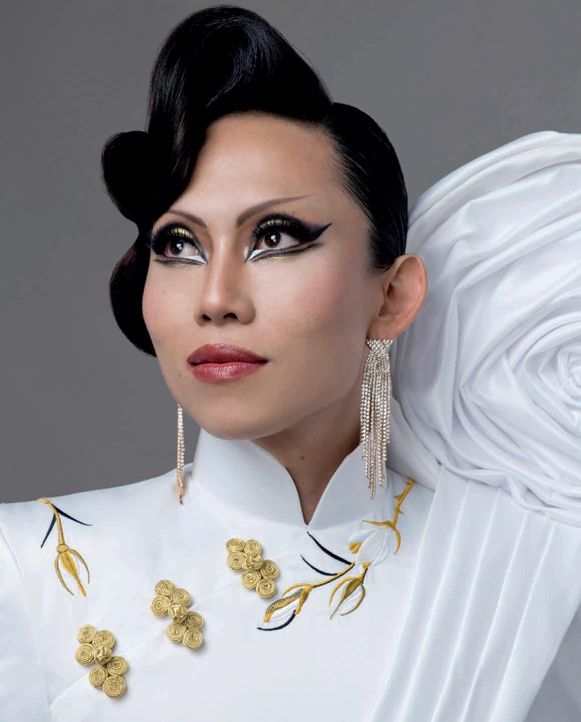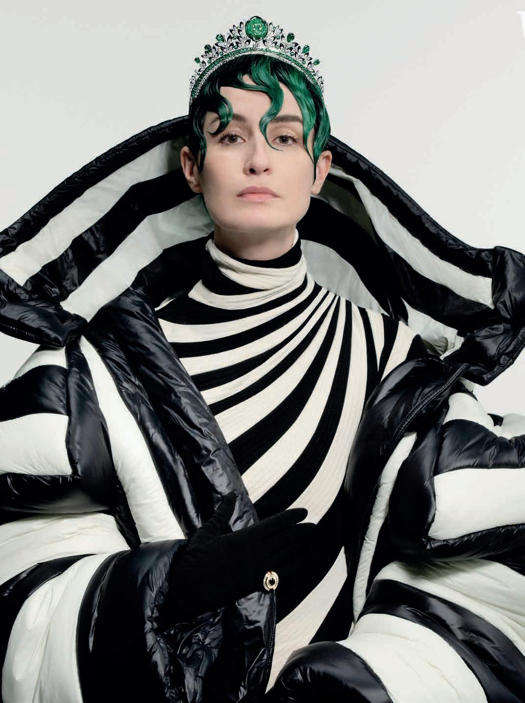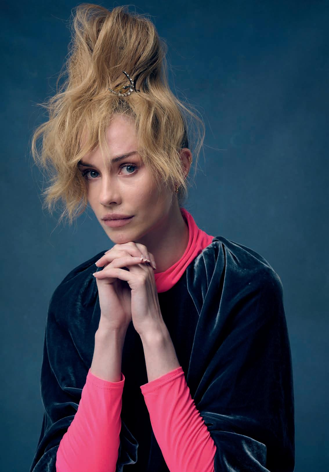Another favourite collaborator is Erin O’Connor, introduced to him through make-up artist Adam de Cruz. The rst job was prepping her for three FROW appearances at Fashion Week, three different looks needed in one day. He gets a little emotional: “It felt immediately like family. She’s open to anything, the perfect subject, but she also comes with an incredible fashion heritage. You meet this person who has worked with all the greats, and it puts a lot of pressure on you!” he laughs. “She’s had every hair colour, cut and wig on her head! You’re working with someone who can carry off any look – that’s the exciting part.”