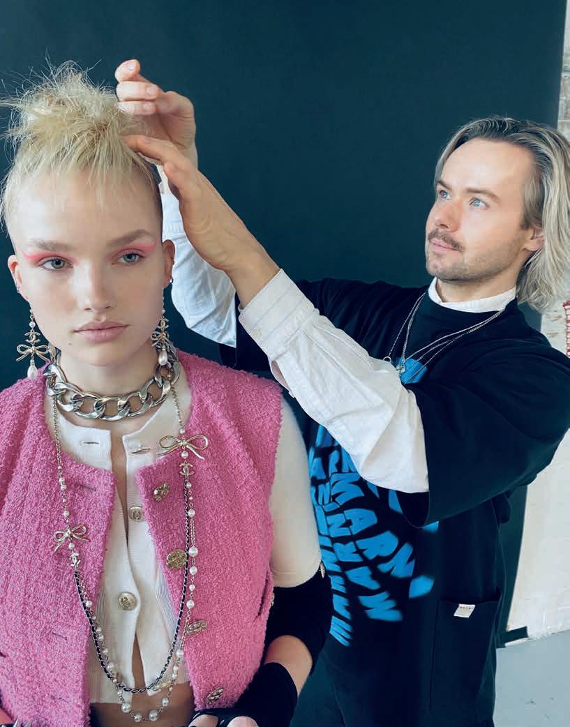 What’s also changed backstage –whether on set or at the shows – is the prevalence of social media, something that Bjorn has cannily worked to his advantage; he’s often followed by a camera backstage to ensure brilliant content. “I love a Reel, you can show who you are, highlight your work. When you look at someone’s social media pro le, you really get an idea who they are. I have talent following my pro le, seeing what I’ve been doing, and they tell their publicist they’d like to work with me. Then new collaborations start.”