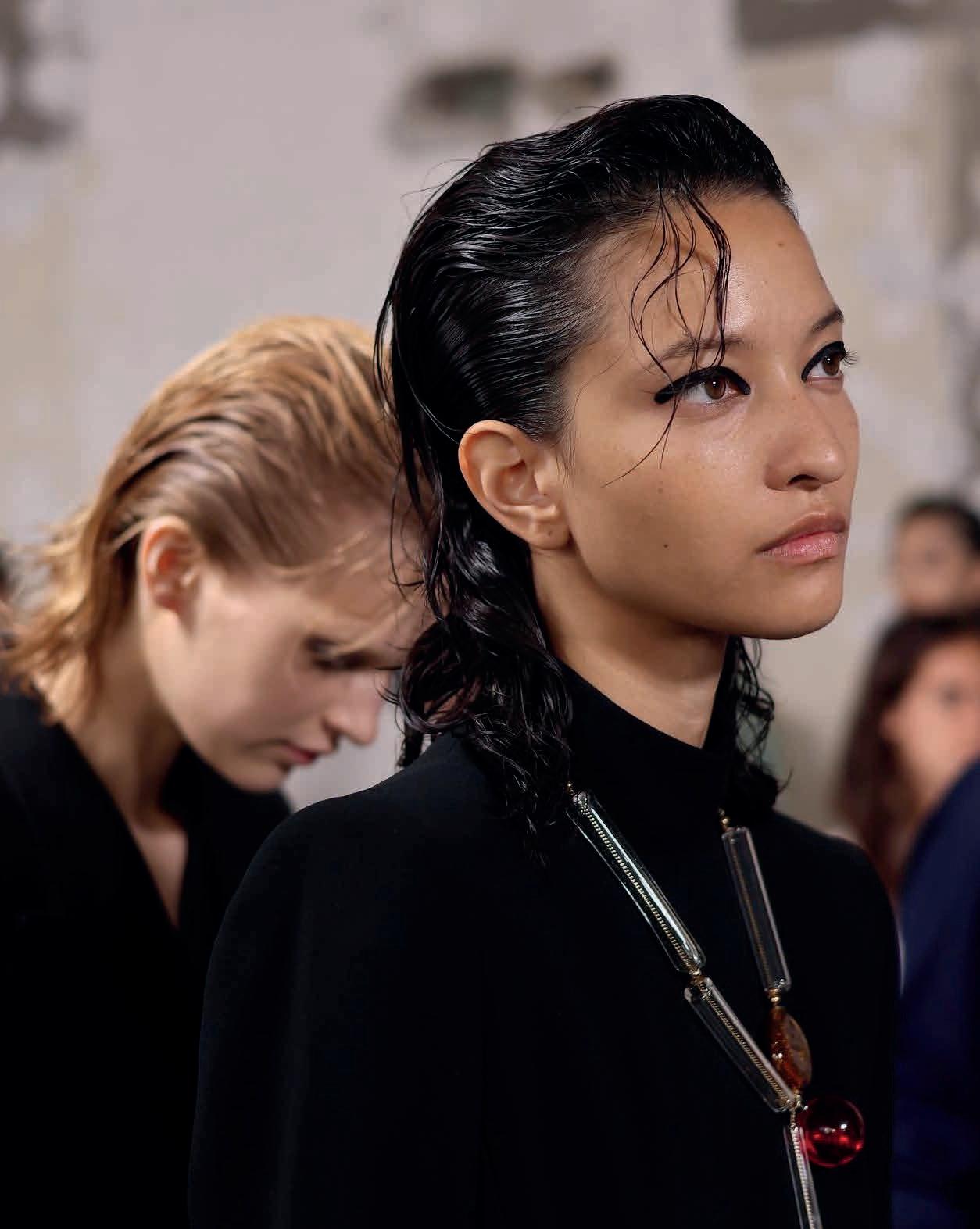 JACK MERRICK-THIRLWAY of Neville Hair & Beauty led a L’Oréal Professionnel Paris hair team styling more than 125 models for The White Show, Central Saint Martins’ annual tradition that challenges all fi rst-year BA Fashion Design students to construct garments using only white materials. Leading the hair for L’Oréal Professionnel Paris, Jack and the team created several variations on style to suit each individual model and garment, with the key theme being slick, refi ned, and polished. Working with lots of product to create a high-shine, smooth fi nish from the neck up, only the lengths were left with body to create a contrast in texture. The hero product was quickdrying L’Oréal Professionnel Paris Tecni.ART Volume Lift Mousse, alongside Tecni.ART Fix Design for the ends. Other key styling features included space buns and sharp up-dos for designs with high necklines. This year’s show explored how we can fi nd a sixth sense in fashion, emphasising the process of play and how to achieve outcomes with sensory experimentation.